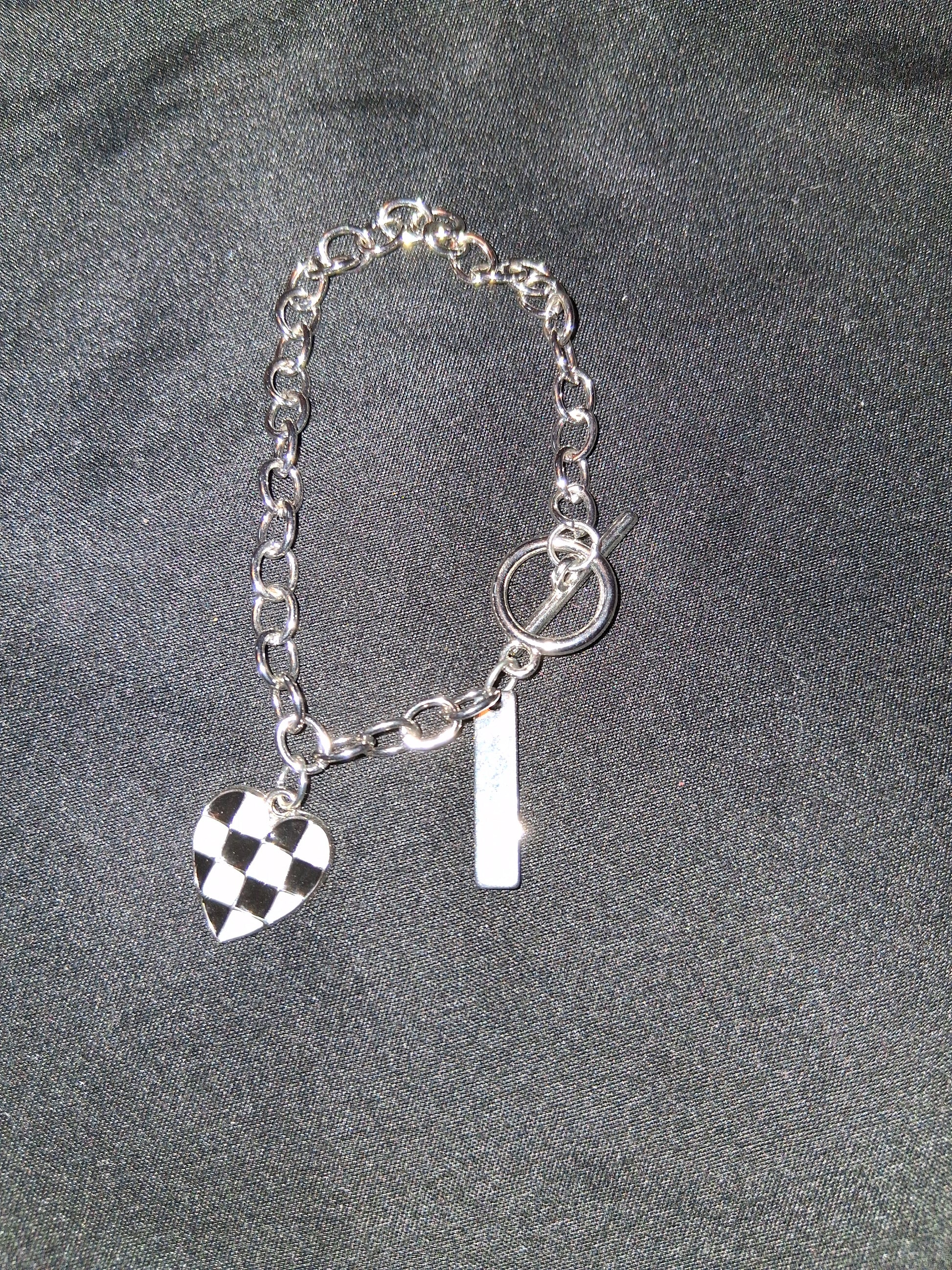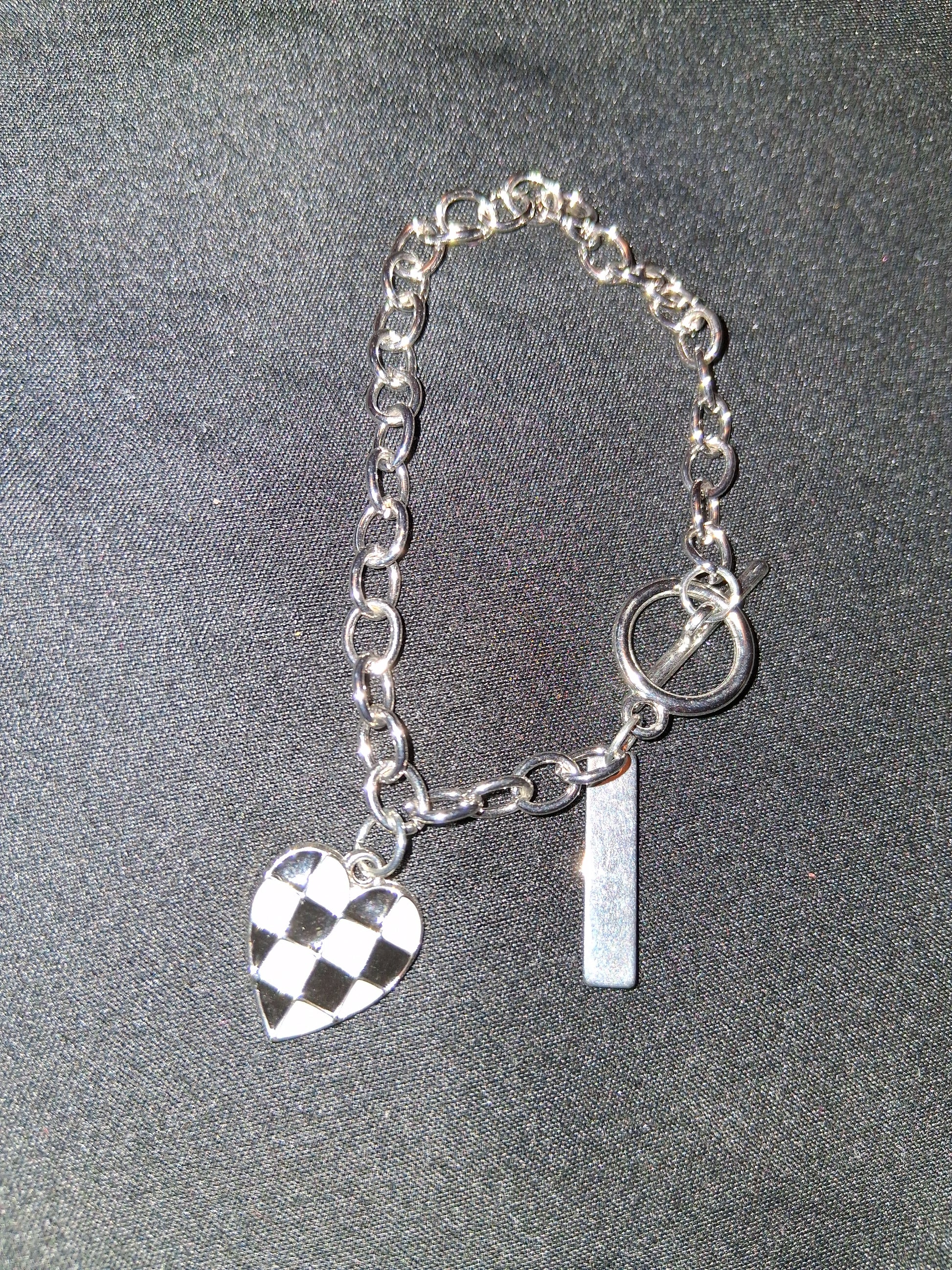 Heart checkered bracelet silver tone cocomoney costume jewelry