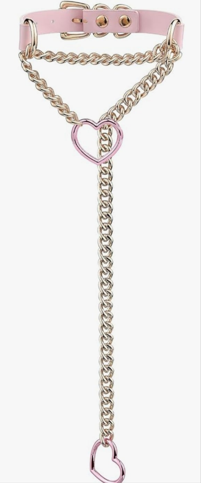 CHIC DESIGN: This unique necklace seamlessly combines a leather collar with a slip-chain necklace design. Crafted from 3/4" vegan leather in Black/Pink, it features no nickel hardware available in silver, gold, or gunmetal. The design is completed with a Y-necklace that drapes below, adorned with charming heart O-rings.