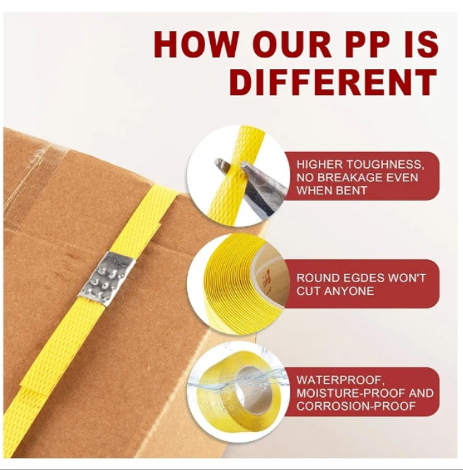 【High Quality】Made of high quality PP material, the banding strapping kit is durable and sturdy enough for long life time. You can create much tension in the bander, perfect for storage of pallets and heavy bundles. The packaging strapping kit would be strong enough or tight enough for shipping, it won't break .Maximum tightening force: 130Kg