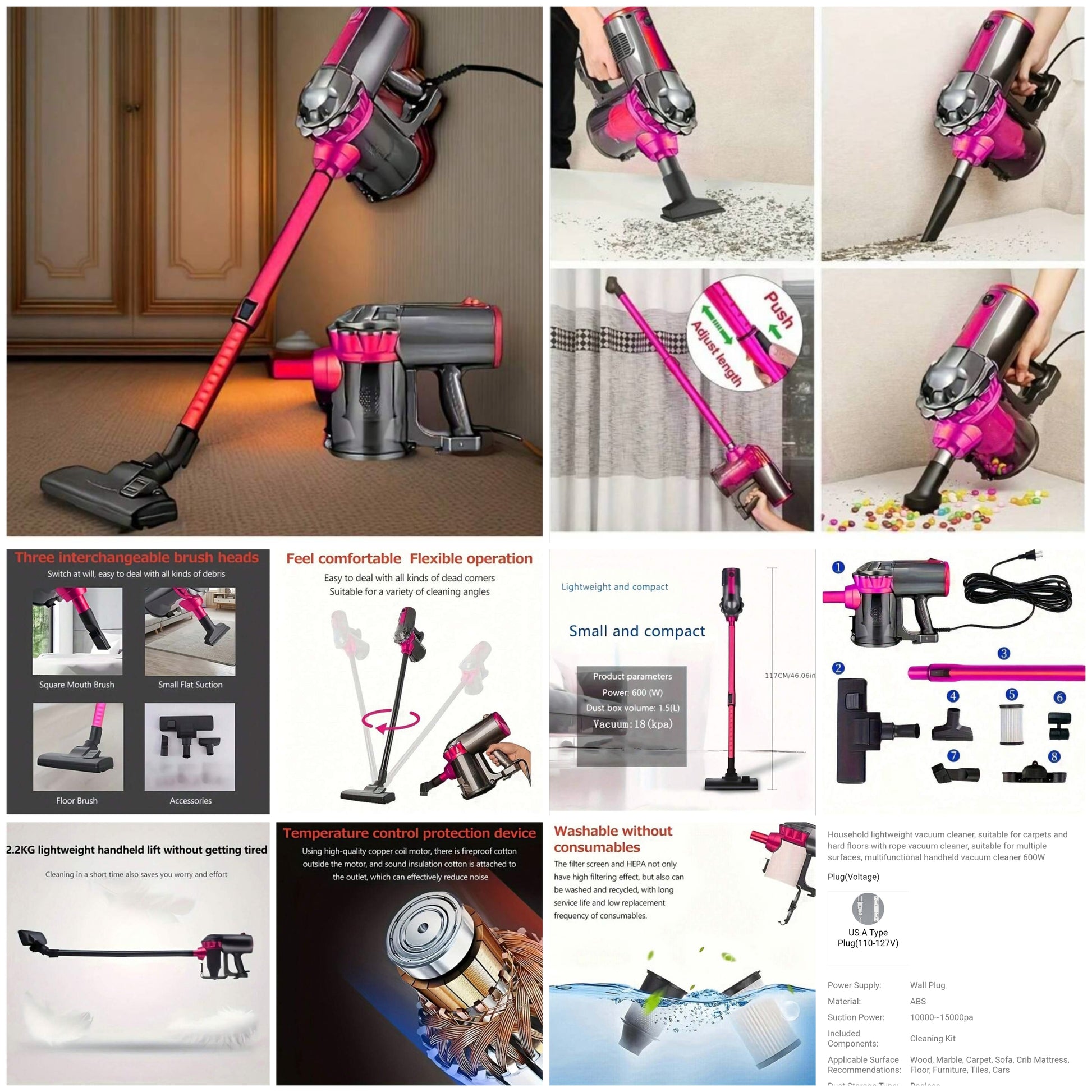 HHD Household Lightweight Vacuum Cleaner, Suitable For Carpets And Hard Floors With Rope Vacuum Cleaner, Suitable For Multiple Surfaces, Multifunctional Handheld Vacuum Cleaner 600W