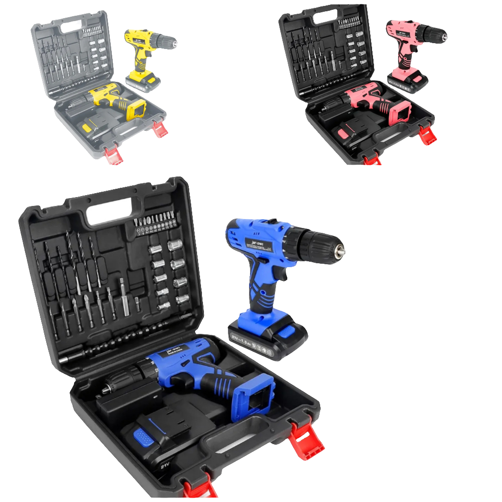 Jar-Owl 21V Pink Cordless Drill Set for Women,350 in-lb Torque, 0-1350RMP Variable Speed, 10MM 3/8'' Keyless Chuck, 18+1 Clutch, 1.5Ah Li-Ion Battery & Charger for Home DIY and Repair - Black & Pink