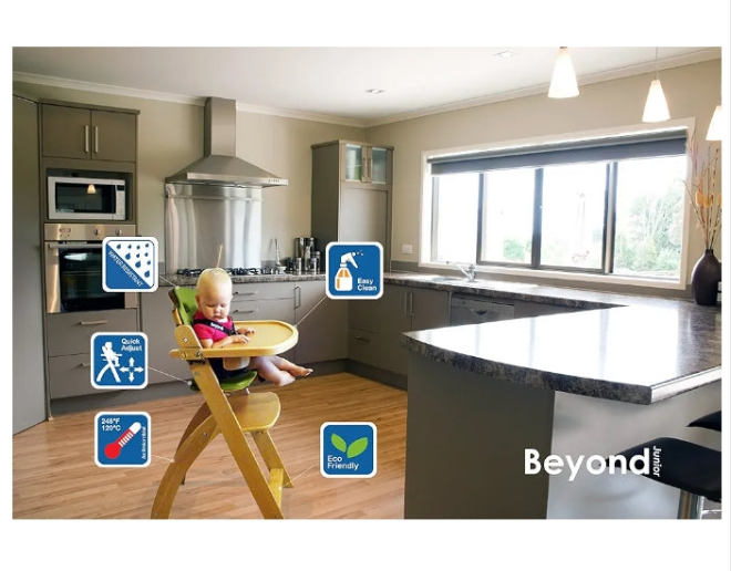 HYGIENIC FEEDING CHAIR: This Abiie Beyond Junior high chair went through a state-of-the-art pressure-assisted high-temperature sterilization at 248 °F (120 ° C) to ensure a hygienic environment for your child. You can trust that your child will enjoy their meals in a healthy, germ-free space.