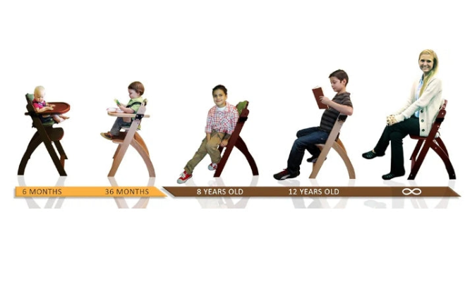 EZ-SEAT MODERN HIGH CHAIR: This wooden high chair for baby can be transformed to any height position to be used as a wooden high chair for toddlers or as a traditional dining chair for all ages, all within less than 20 seconds! It's economical and instantly provides an extra chair to your home when needed. No tools needed for adjustment.