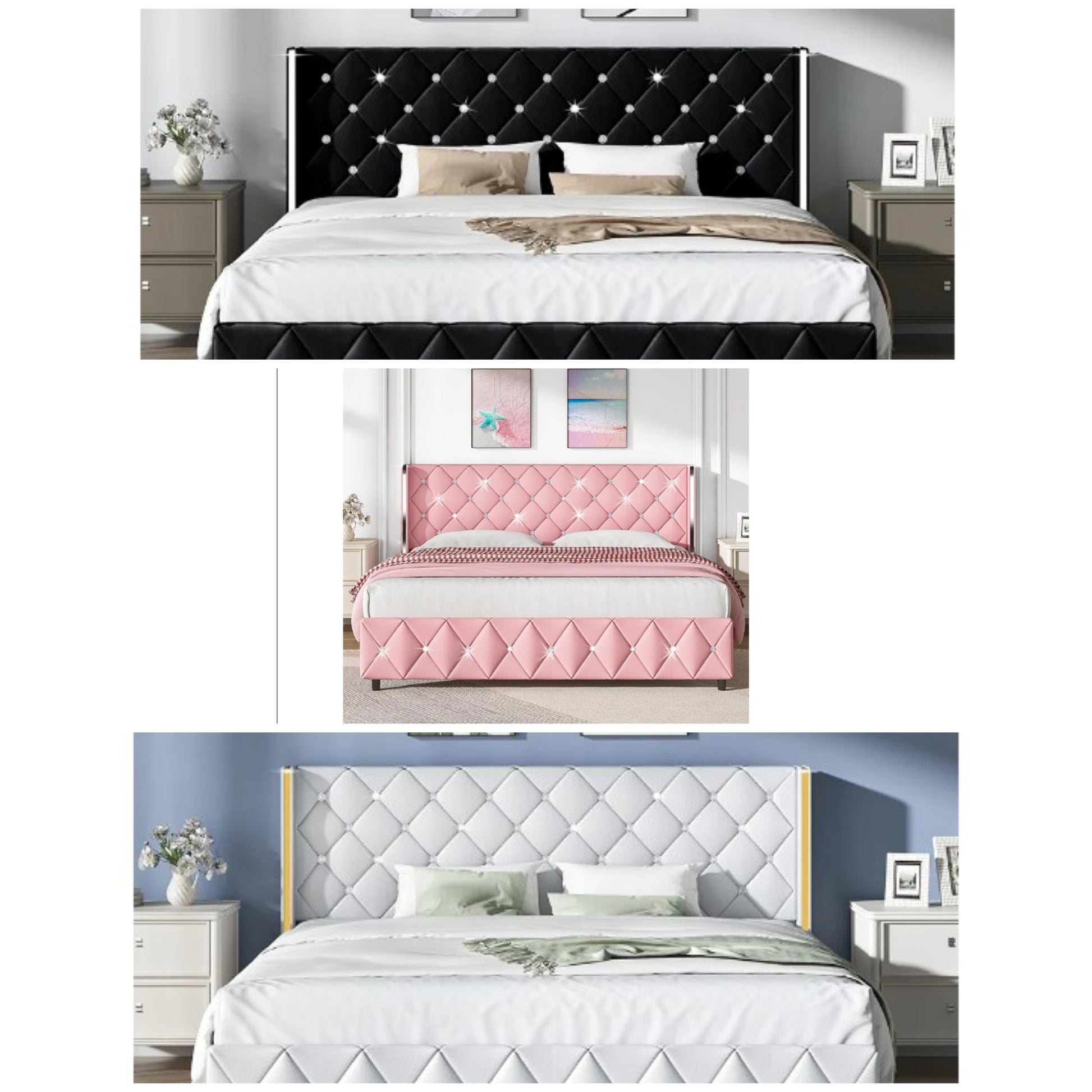 Modern Luxury Bed Frame: Combining a stylish diamond headboard and footboard with a popular wingback design, this king bed frame with headboard easily matches any bedroom style or color scheme, becoming the center of the interior