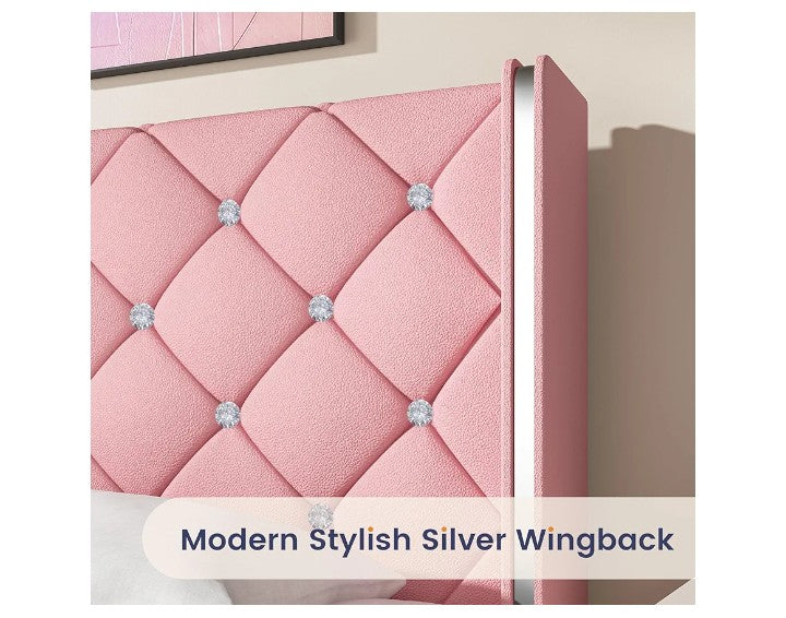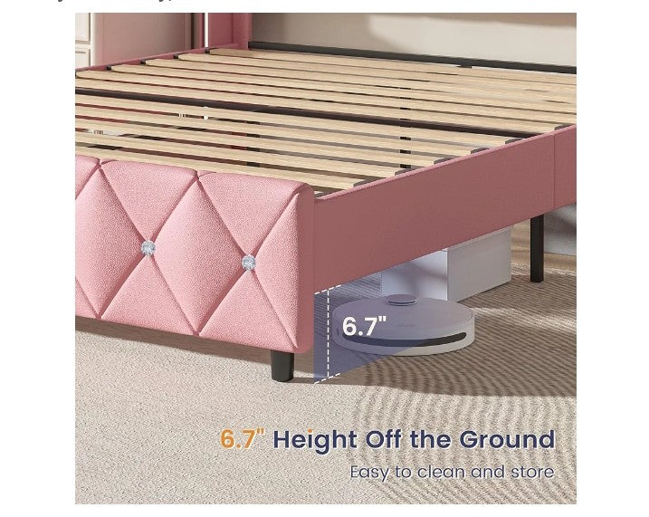 Sturdy & Noise-Free: The upholstered bed frame is designed with a sturdy construction to provide a stable and comfortable sleeping environment. Most importantly our pink bed frame supports your mattress and prevents it from sagging or shifting