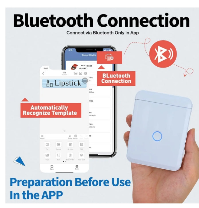 Label Maker Machine with Tape D110-M Portable Bluetooth Handheld Label Printer Included Multiple Templates Available for Phone Pad Easy to Use Home Office Organization USB Rechargeable-
