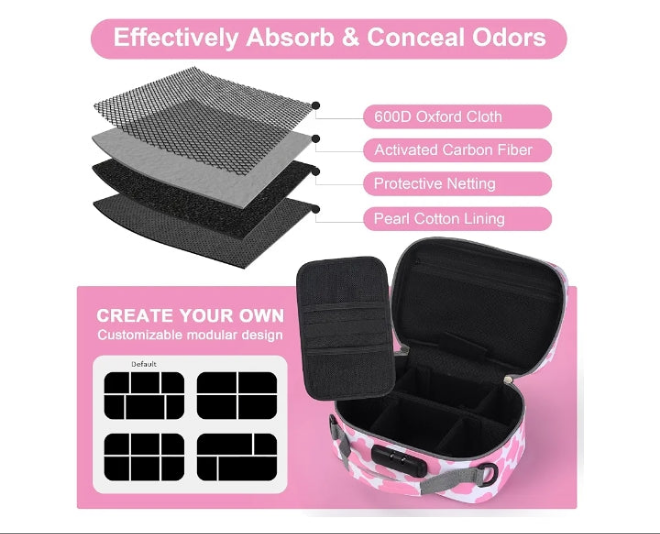 Large Storage Bag with 11 Small Items by COCOMONEY, Portable Storage Case with Combination Lock for Home and Travel(Cute Cow Print) Pink and WhiteItem Dimensions 10 x 4 x 7 inches