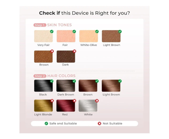 Bid Farewell to Stubborn Hair: with an impressive energy output of 24J per pulse burst, effectively removing even the most stubborn hairs. !!Note: IPL technology is not suitable for everyone and every body part. Please refer to our skin tone chart before use.
