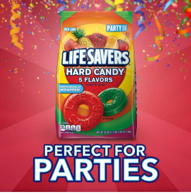 Contains one (1) 50-ounce party size bag of LIFE SAVERS 5 Flavor Hard Candy