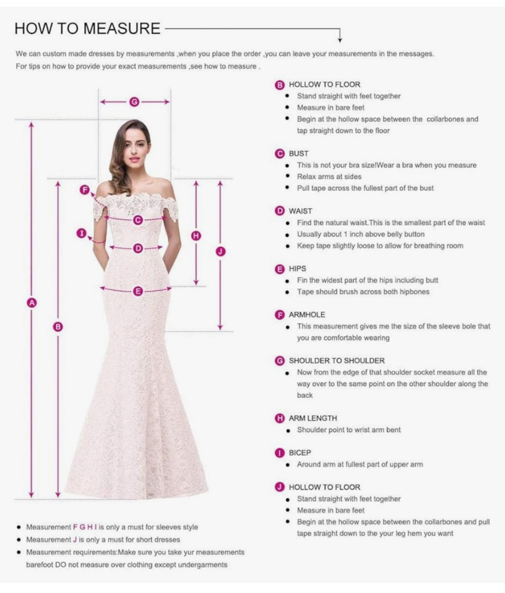 Size:Please refer to the size chart in displayed images, if you are not a standard size, please email us your detailed measurements, like bust, waist, hips and height. Usually we will send a email to confirm the size with you after receiving your order, please kindly check Amazon APP message.
