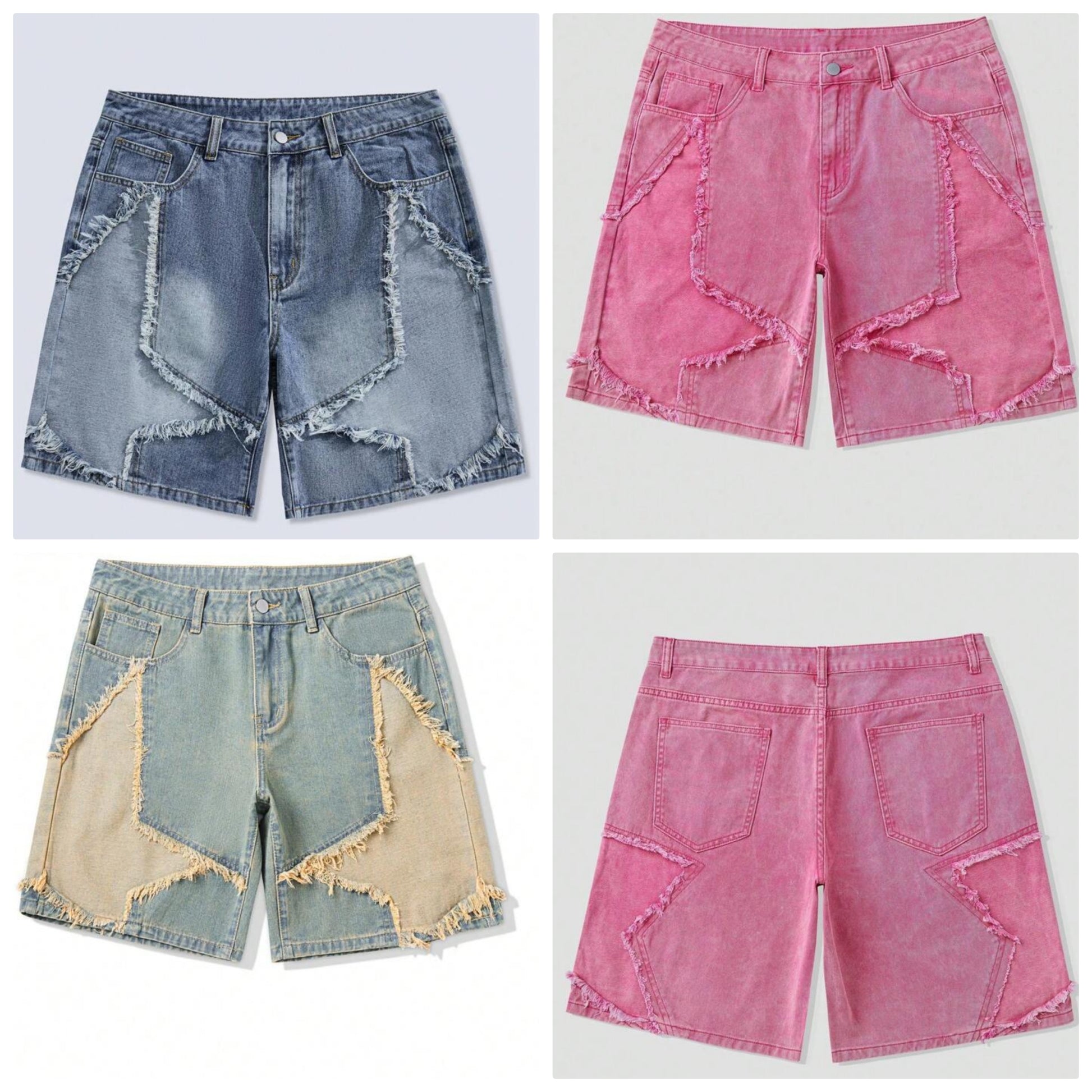 Loose Fit Men's Cotton Ladder Distressed Denim Shorts COCOMONEY