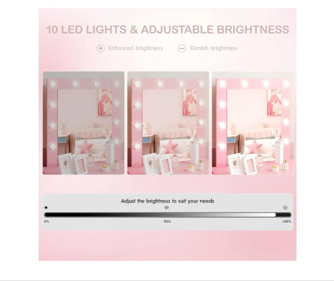 【Cute Black Vanity with Lights】10pcs dimmable LED bulbs, enhances the beauty of your bedroom. Great modern look, very popular with young girls. Also suitable for home bedroom or school dormitory, great gift choice for daughter.