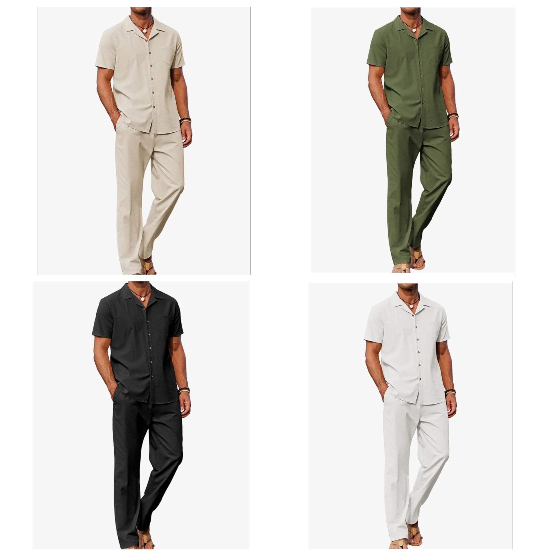 Linen Material -- Men beach 2 piece outfits are made of linen blend fabric. Soft, breathable and easy to the touch, stay cooler, relaxed fit on a hot summer day.