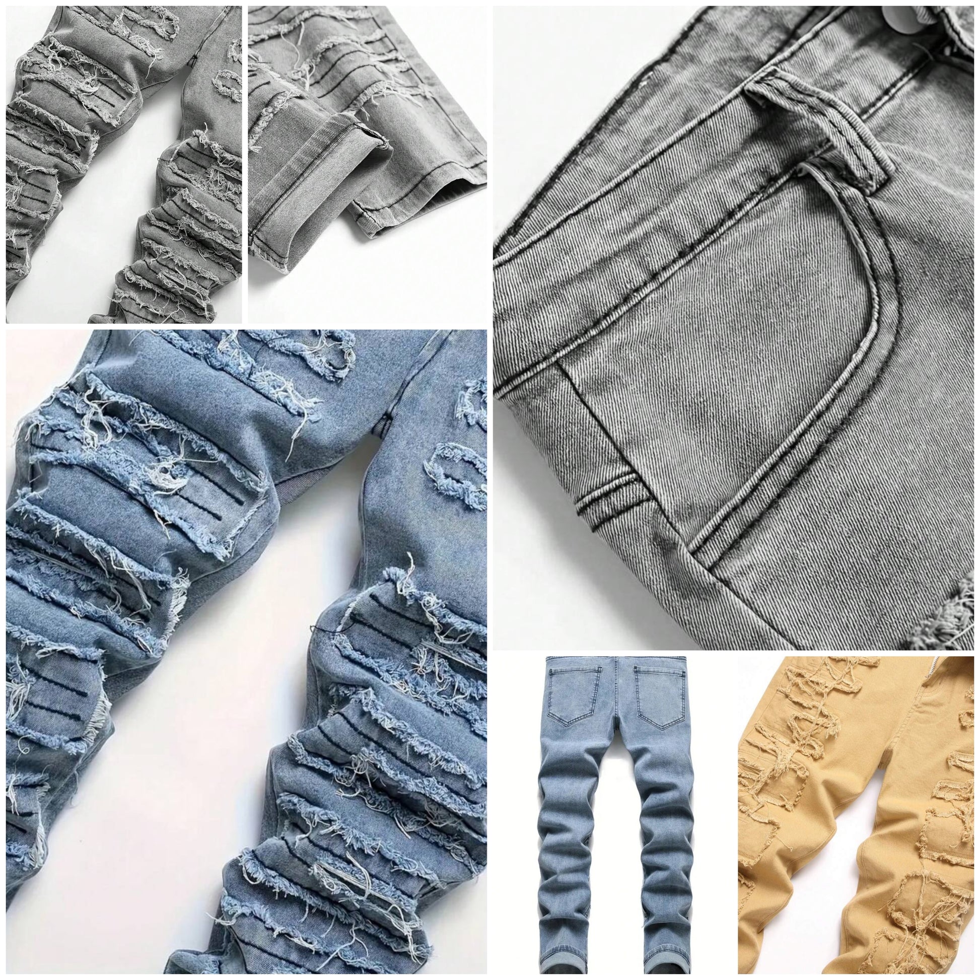 COCOMONEY.STORE. Men's Fashion Fringe Elastic Skinny Fit Jean