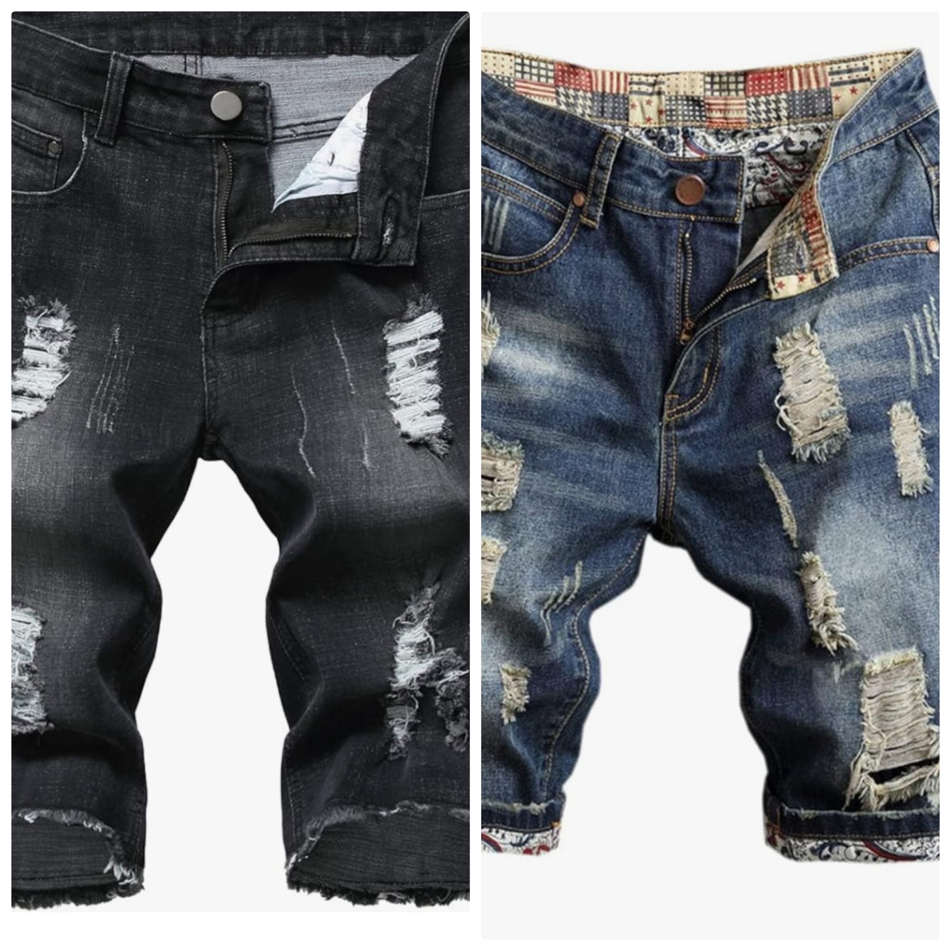 Men's Ripped Denim Shorts & Jeans Summer Casual Classic Straight Distressed Ripped Short Jeans