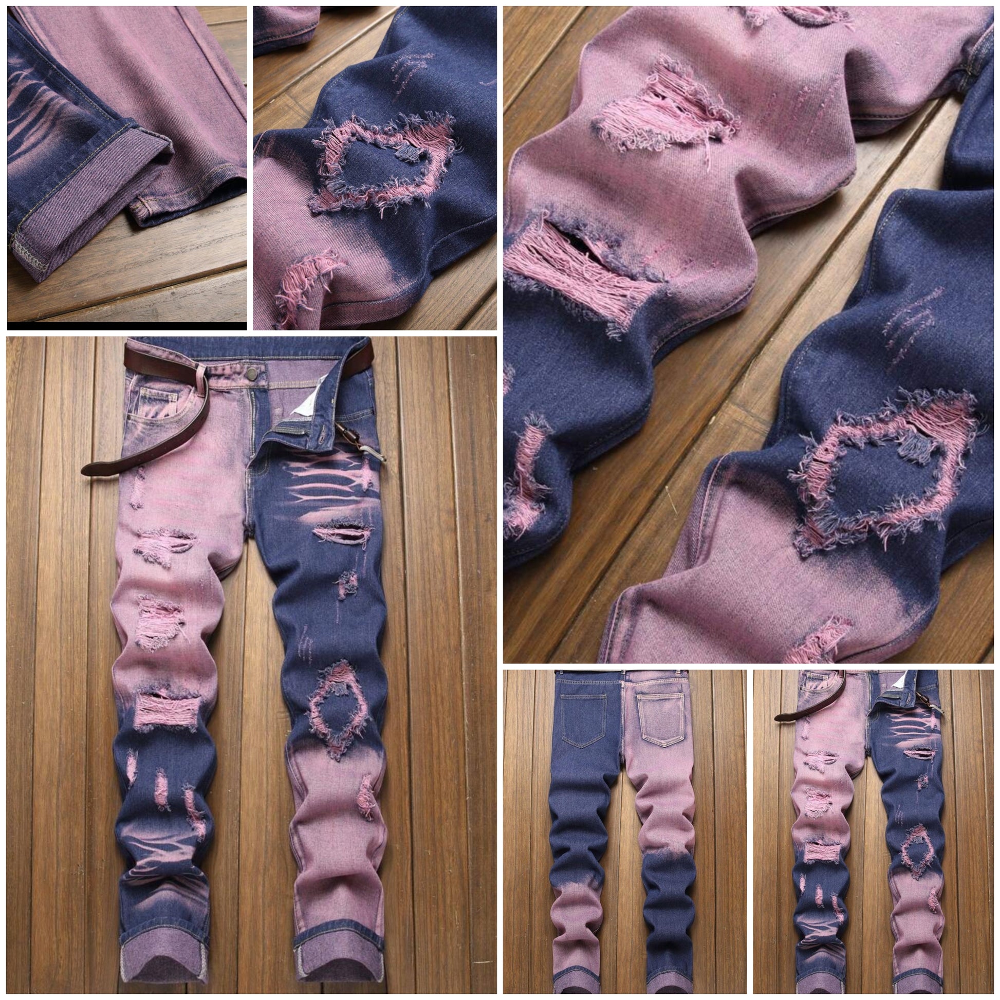 Men's Ripped Jeans Regular Fit Distressed Slim Straight Leg Stacked Biker Fashion Comfort Denim Pants COCOMONEY