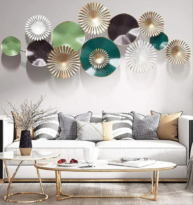 Metal 3D Lotus Leaf Shape, Multi-Layer Paint, Handcrafted, Wrought Iron Decoration Hotel Porch Restaurant Wall Decoration, Art Home Decor Wall