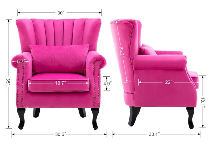 [Mid-Century Modern Style Chair] Featuring a beautiful tufted wingback, black-painted wooden legs, roll arms and chic nailheads, this mid century accent chair delivers a decent elegant decor to your guests and act as a pop up color to brighten your home
