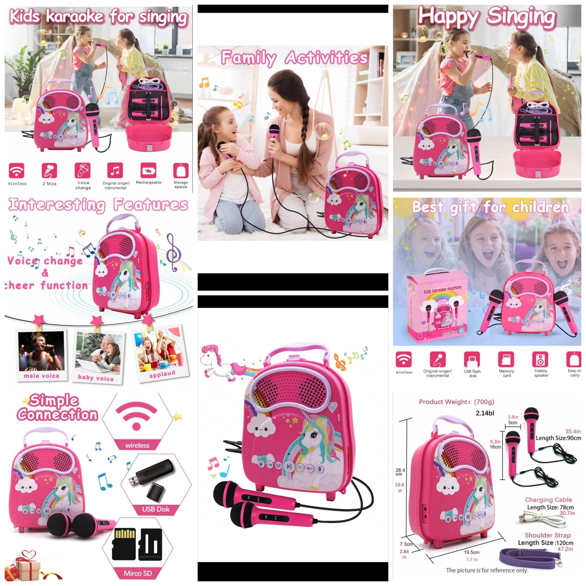 Mini Karaoke Machine For Kids, Portable Wireless Karaoke Speaker With 2 Microphones With Carton Pic Christmas Kids Toys Gifts For Girls