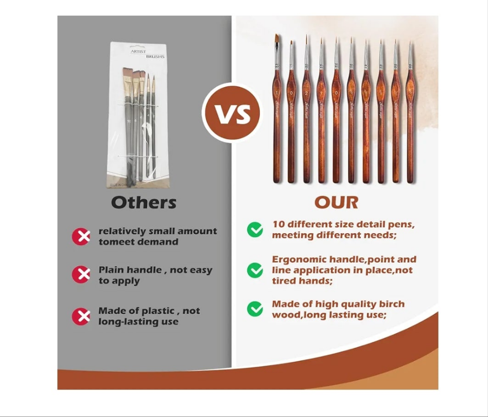 HIGH-QUALITY NYLON HAIR: Golden Maple fine tip paint brushes are made of flexible yet sturdy nylon hair that won't deform with a 90° angle. Excellent elasticity and good water absorption ensures great painting effects.