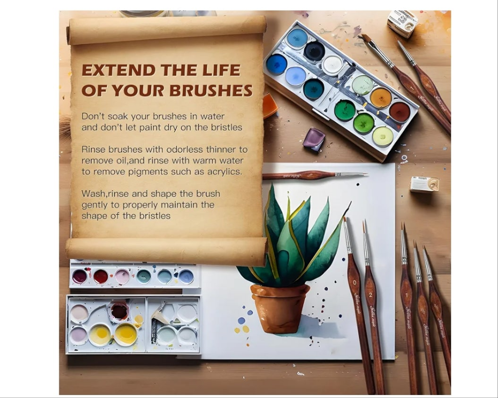 EASY MAINTENANCE: The miniature paint brushes come with protective tubes, making it easy to keep them in top shape. After painting, simply clean the brushes with warm soapy water and reshape the paintbrush tips. Air-dry the detail brushes and store them in the carrying container in a tip-top position for long time of use.