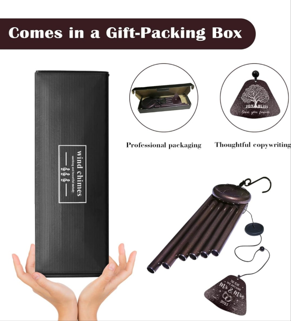Wedding Gifts for Couples Newlyweds: Each gift is safely packaged in a beautiful 13.39x5.31x1.57 inch thickened kraft paper gift box. Warm wishes are written on the wind chime. It is an ideal gift for couples who are about to get married.