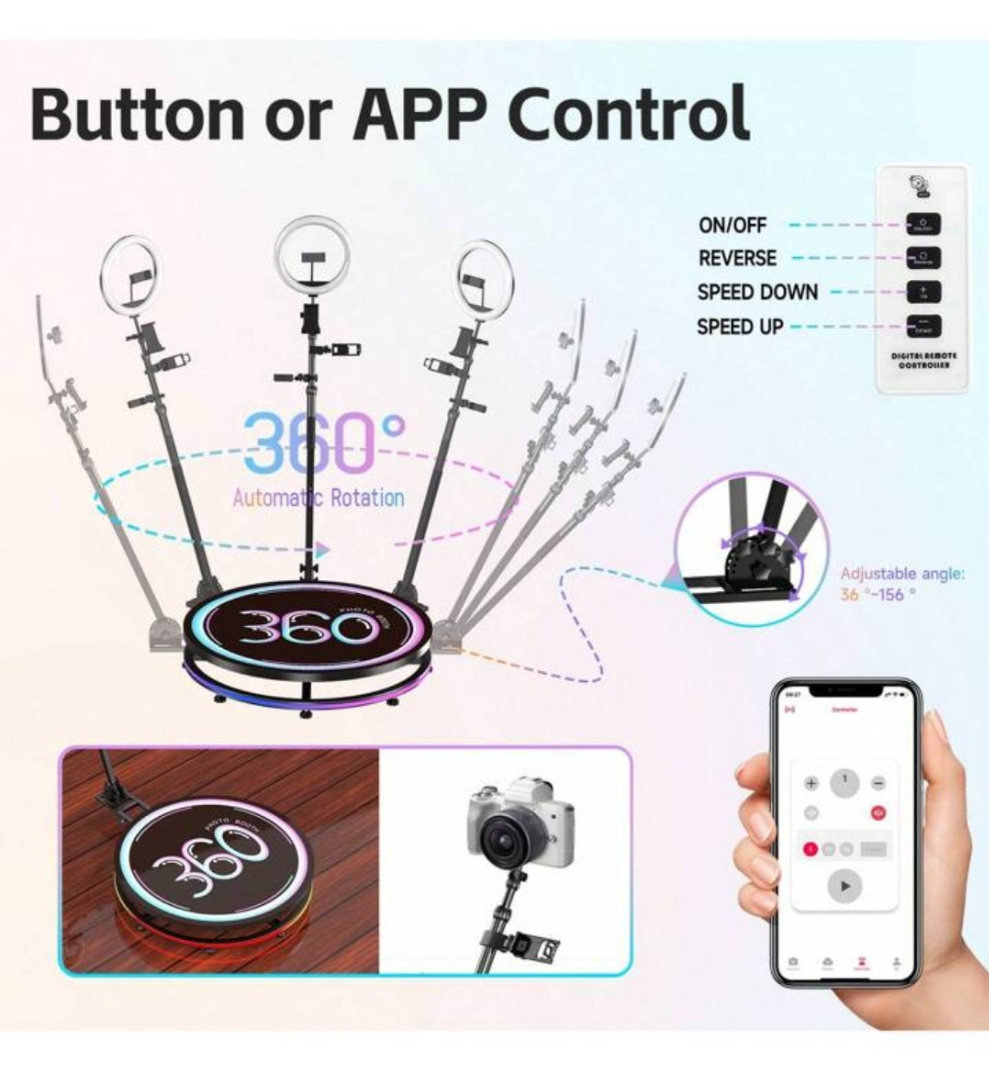 MWE 360 Photo Booth Machine For Parties With Flight Case,Extra Battery,Logo Customization,Software APP Remote Automatic 360 Spin Camera Booth
