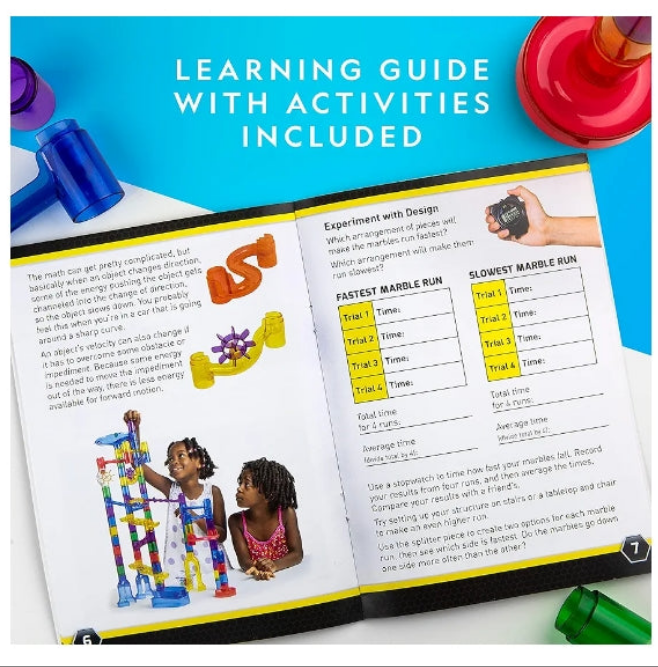 GREAT STEM TOY – The learning guide inside teaches about the physics of motion and aerodynamics. It also includes marble run construction experiments