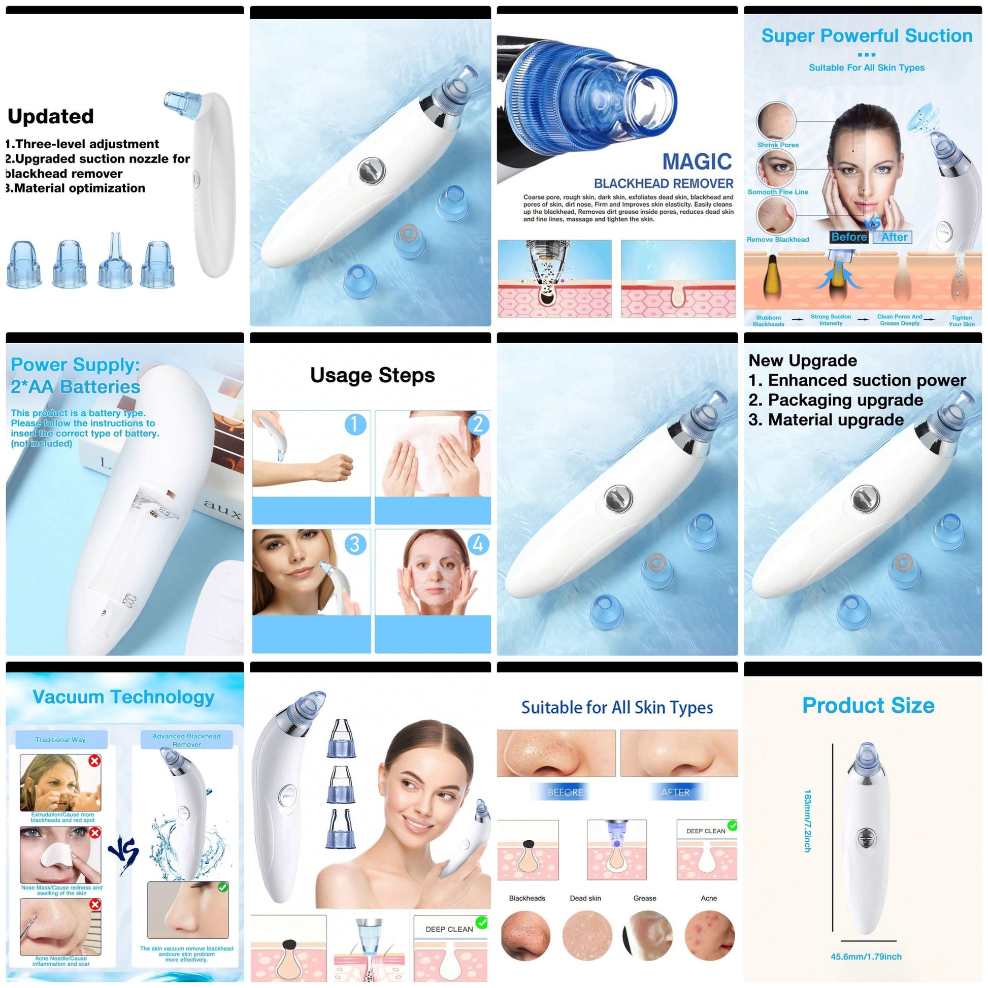 New Upgrade Electric Blackhead Vacuum Suction Remover, Stronger Suction Power,Powerful Portable Facial Pore Cleaner With 4 Probes,Remove Blackhead In Gentle And Safe Way Without Squeezing Pain For Women And Men. Your Personal Professional Beautician, Suit