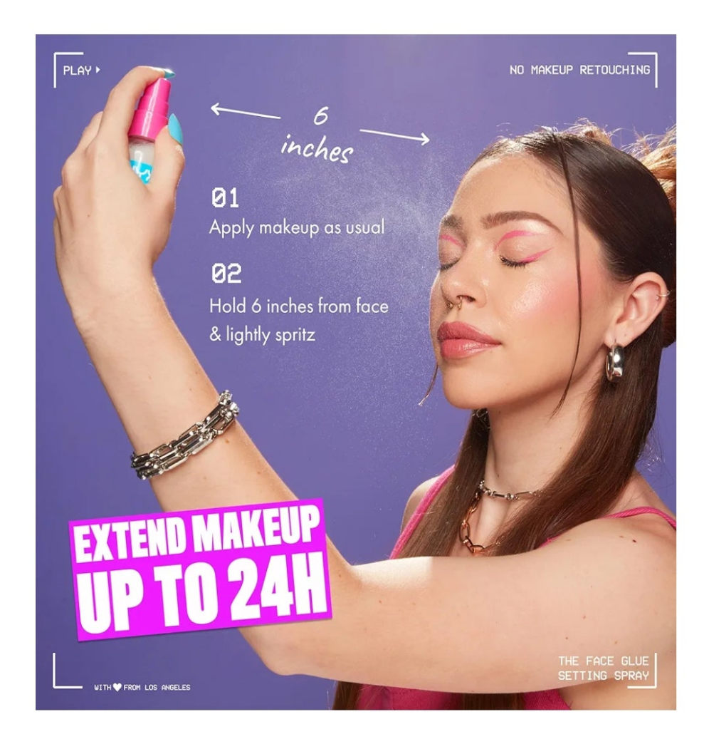 Glue Your Make Up Look Down: Don't just lock it down, GLUE it down with The Face Glue Setting Spray! This waterproof setting spray boosts skin and makeup color vibrancy for fade and transfer-resistant face makeup looks