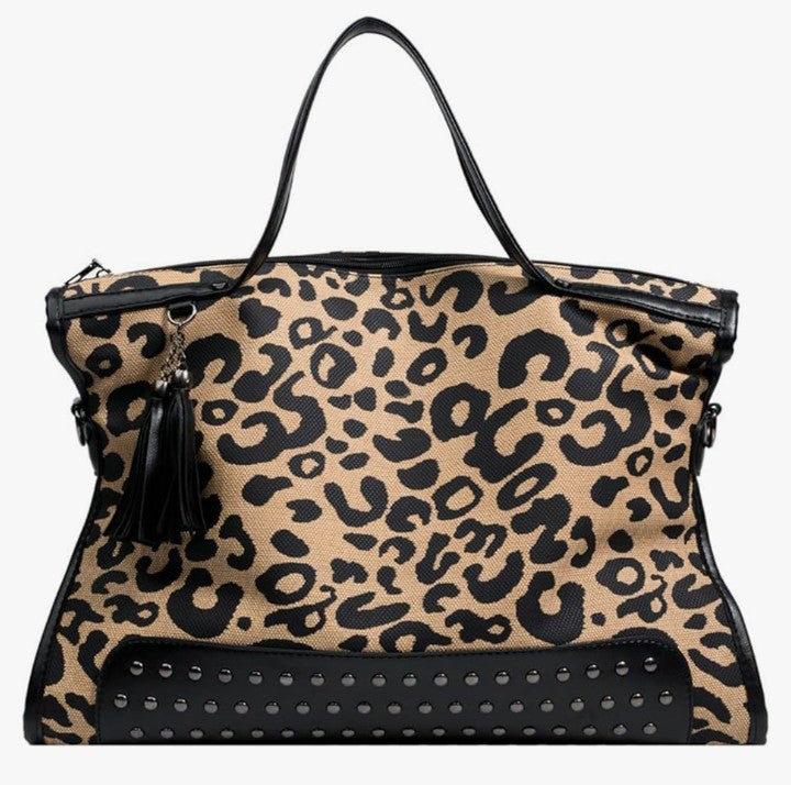 Stylish Wild Animal Pattern Bag: this oversize leopard bag is made by Vegan PU material with jacquard cheeath pattern on it, the punk rivet is added for the enhance your personality.