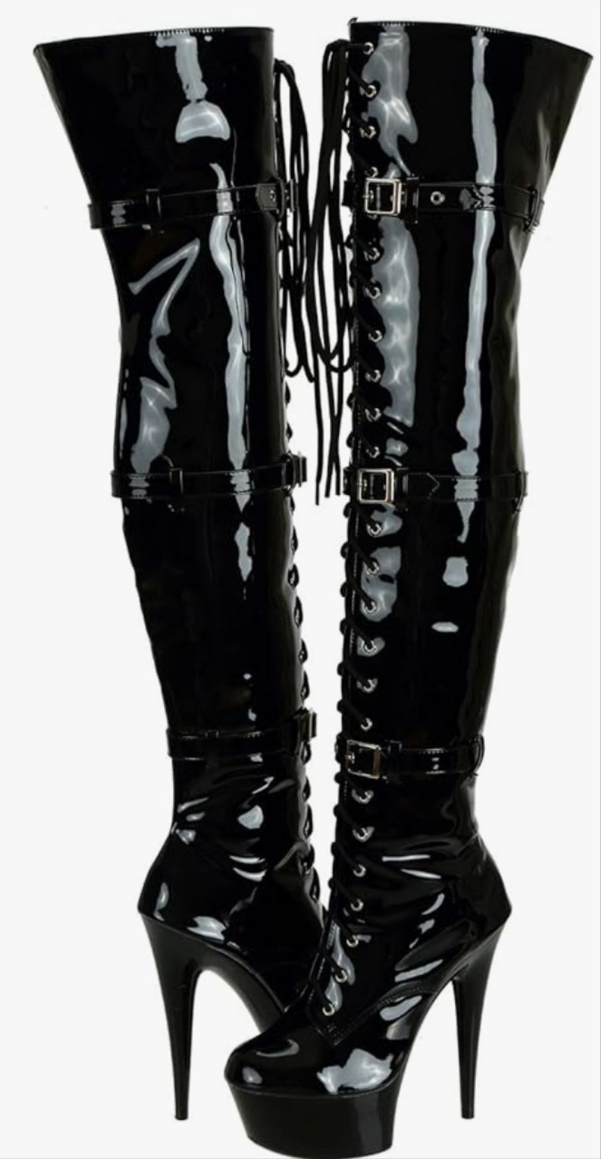 Patent Leather Thigh High 15CM Stiletto Heel Dancer Boots with Zipper Lace Up Club Party Cosplay Shoes