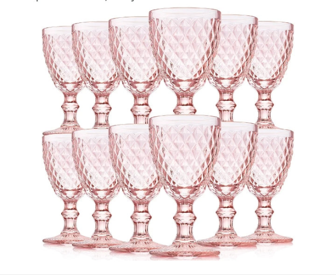 Wine Glasses Set of 12: you will receive 12 pink wine glass stemmed cups with embossed diamond pattern design, goblets glassware set of 12 is suitable for everyday glassware and important events, such as weddings, dinners, parties and other events or occasions
