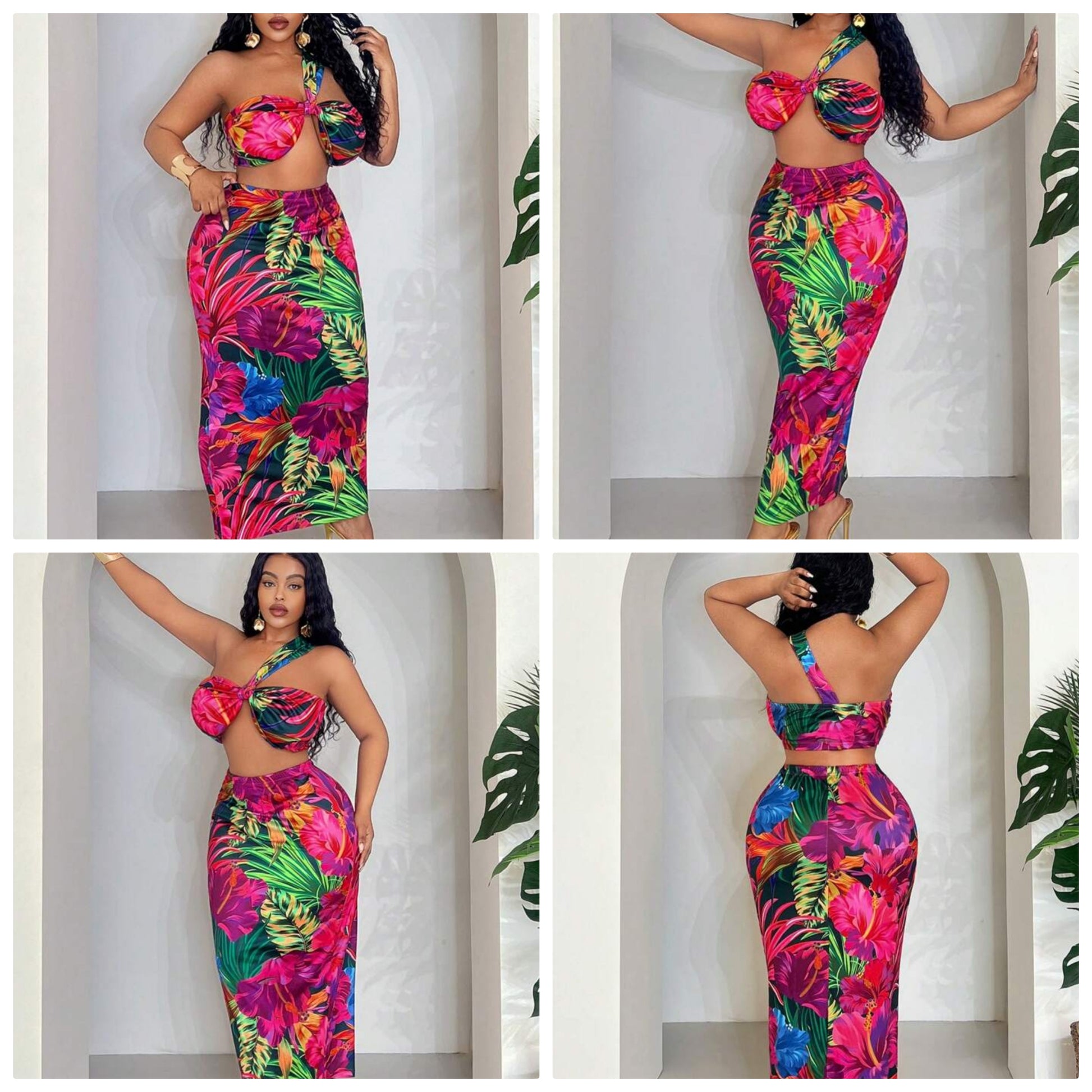 Plus Size Bodycon Long Top And Skirt Two Piece Set, Vacation Style, Spring/Summer COCOMONEY