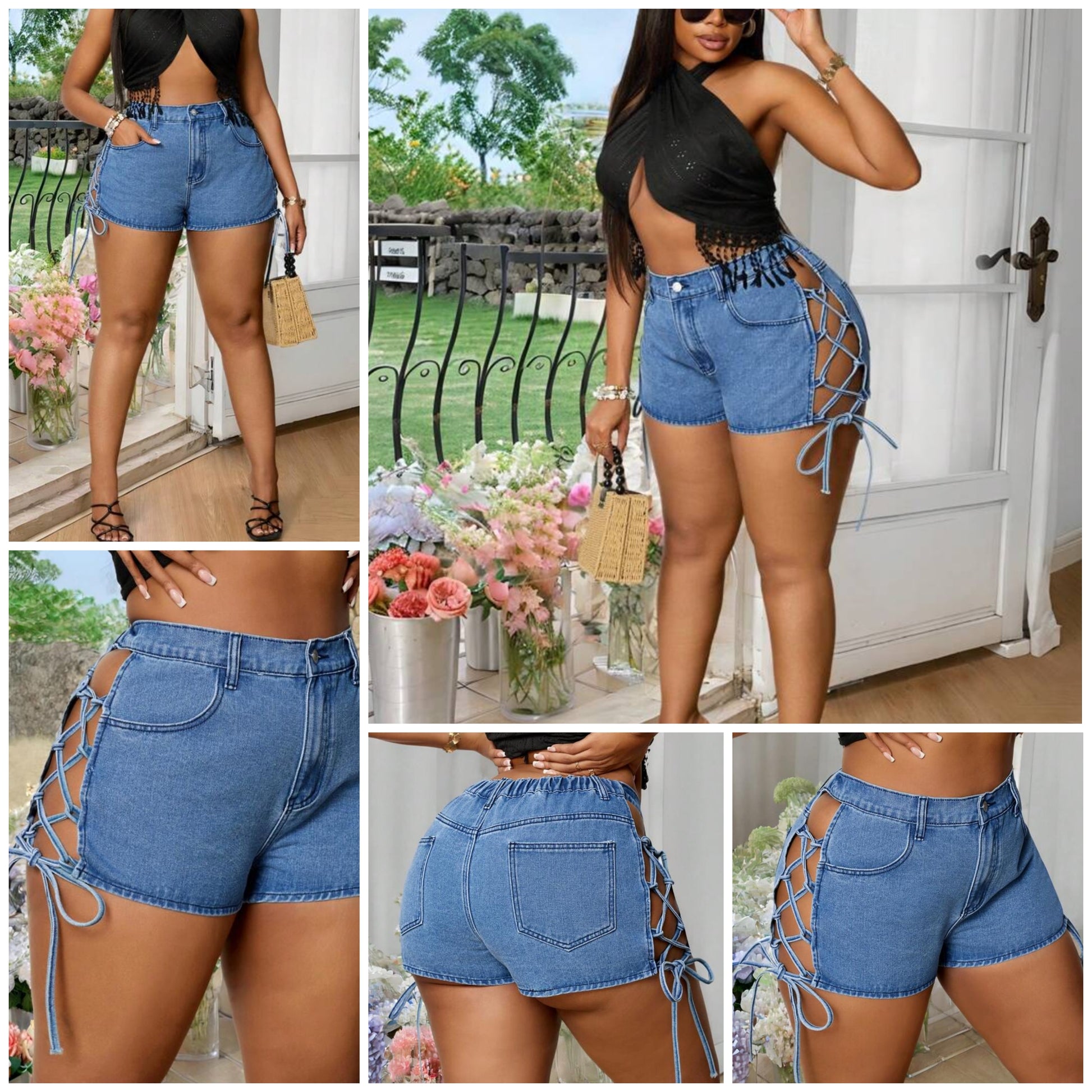 Plus Size Denim Vacation Straps Summer Shorts Sexy Sunshorts Women Summer COCOMONEY