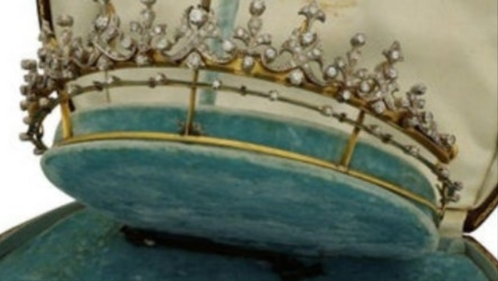 COCOMONEY.STORE,,,,AUTHENTIC VERIFIED INSPECED GUARANTEED,,,,A beautiful Victorian diamond tiara convertible to a necklace c.1880s, the tiara formed of a graduated row of eleven fringe spires of foliate and scroll design with fleur-de-lys details, set throughout with old brilliant cut diamonds, the spires of alternating design and length, the principle ones terminated with a fleur-de-lys motif above a single diamond between crossed scrolls, the others formed of a foliate spray topped with a single diamond, all set in silver and gold above a knife edge bar embellished with sixteen diamonds which forms the back of the necklace. The necklace is formed of these two separate pieces which are joined together by a hook and eye clasp to either side, in original brown leather box with silk and velvet lining.