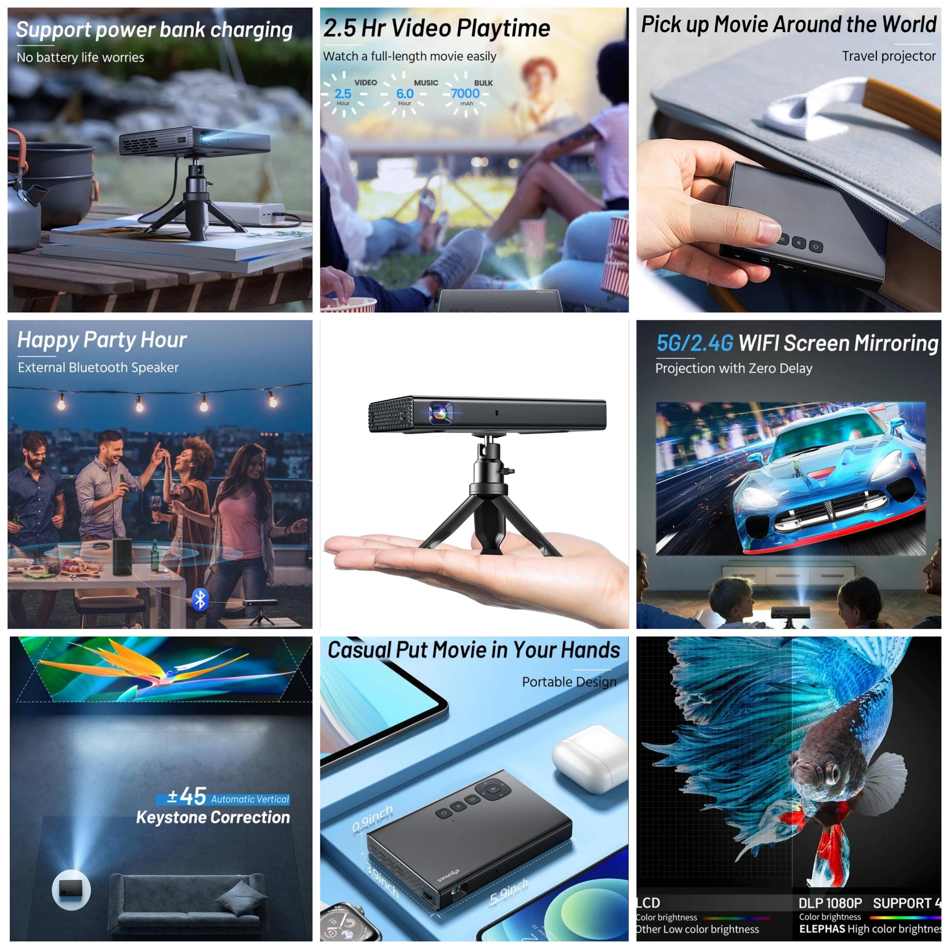 Projector With WiFi And Bluetooth,5G WiFi 9000L Native 1080P Video Projector, FUDONI Portable Movie Projector,Compatible With TV Stick, Smartphone, Tablet, PC,HDMI,VGA,USB,AV
