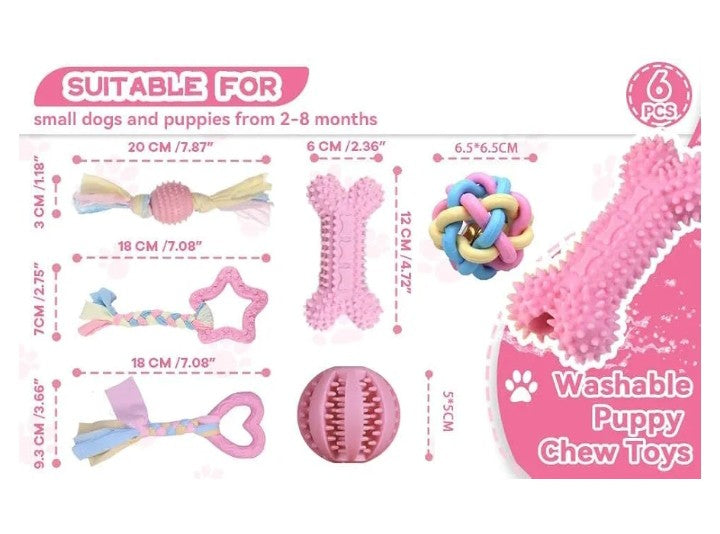 Eco-Friendly Fun: Our 6-pack teething toys for puppies small breed are crafted from high-quality, non-toxic materials, including cotton rope for aggressive chewers. It offers a range of small dog chew toys, all made with eco-friendly materials for a safe and sustainable choice