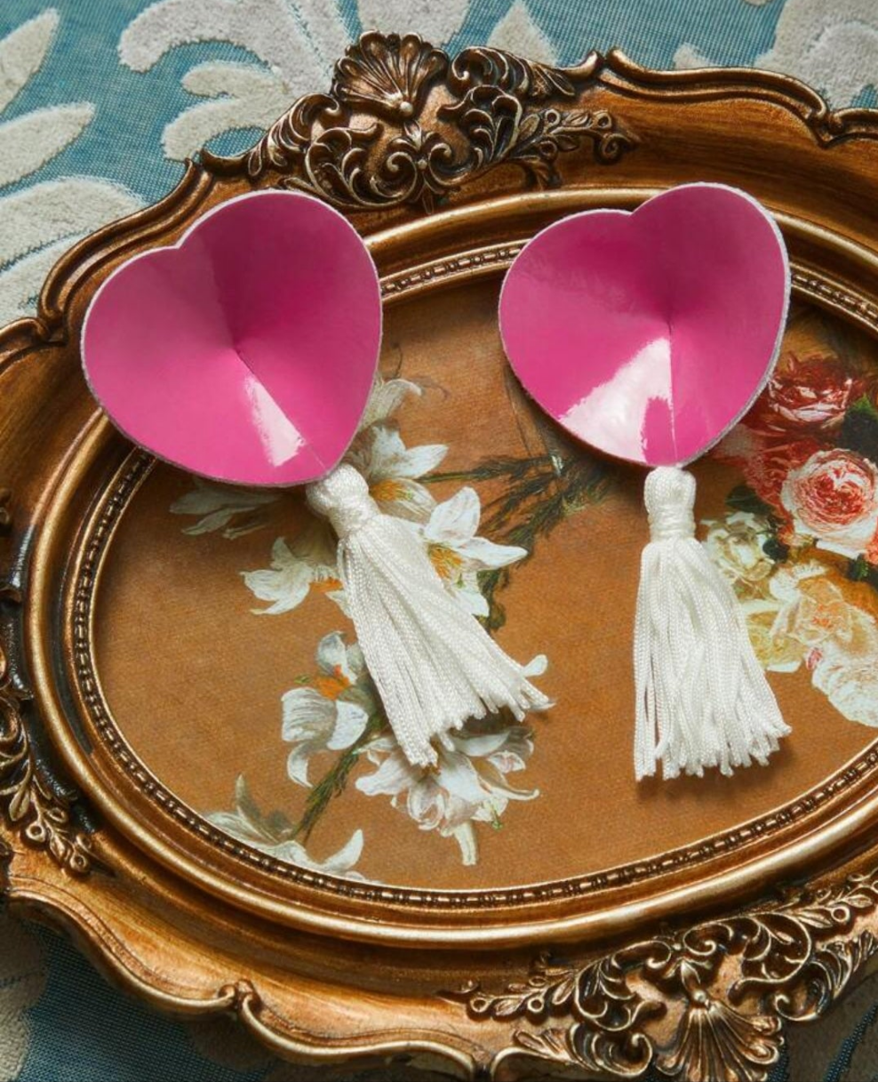 Purple Glitter Heart Shaped Tassel Pasty Decorative Accessory, Plus Size Lingerie