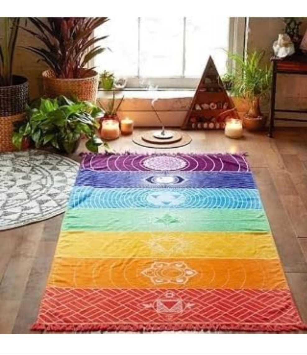 Rainbow Chakra Yoga Mat Sunscreen Shawl Hippy Boho Gypsy