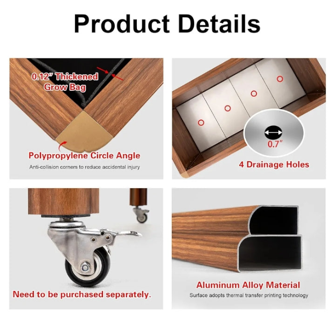 Durable Design: Made of premium 6061 T6 aluminum alloy, this planter box stand is sturdy and rust-proof; the bed liner ensures better drainage and root growth
