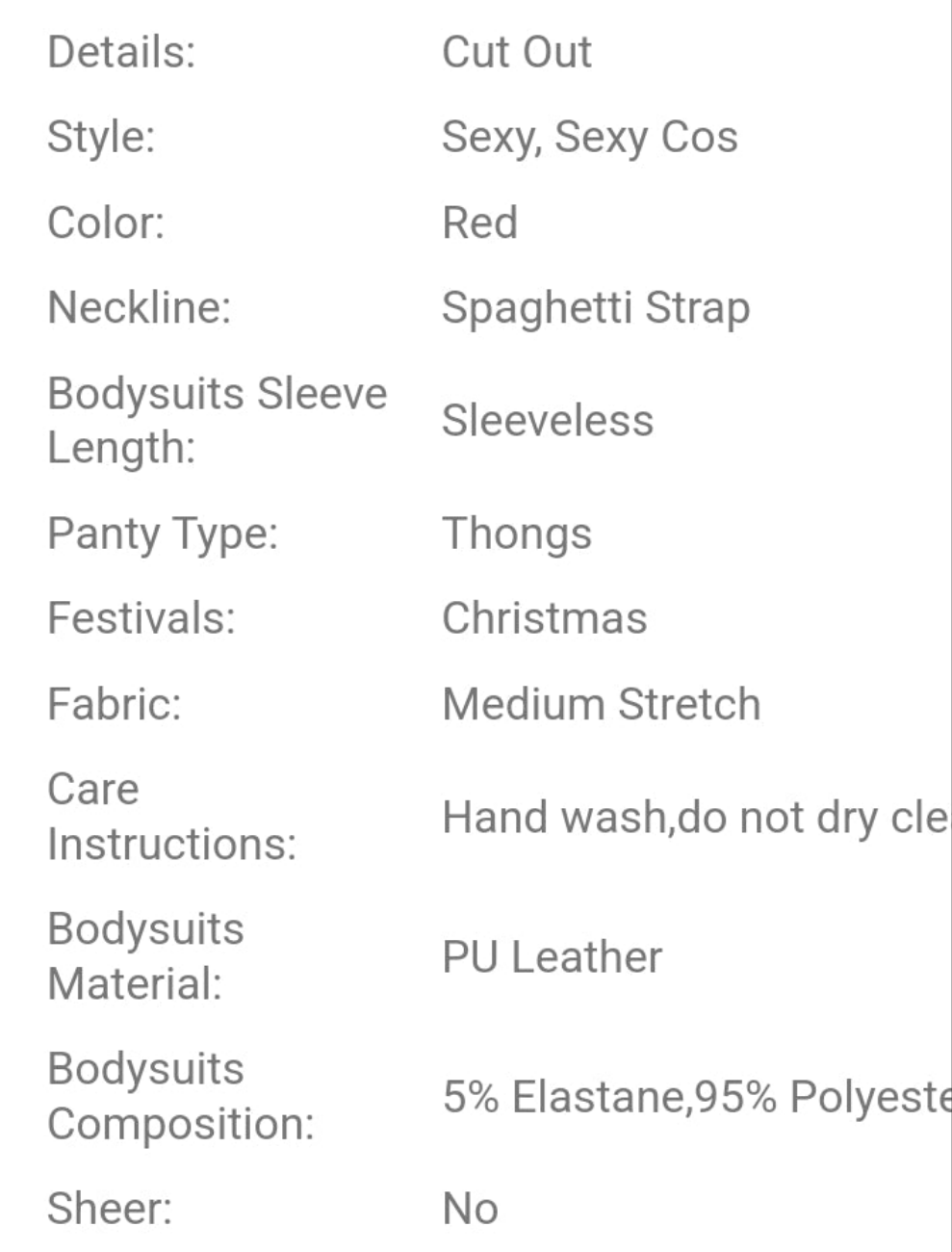 Red PU Leather Sling Bodysuit + Headband + Leg Ring Lingerie Cosplay Bunny Girl Set