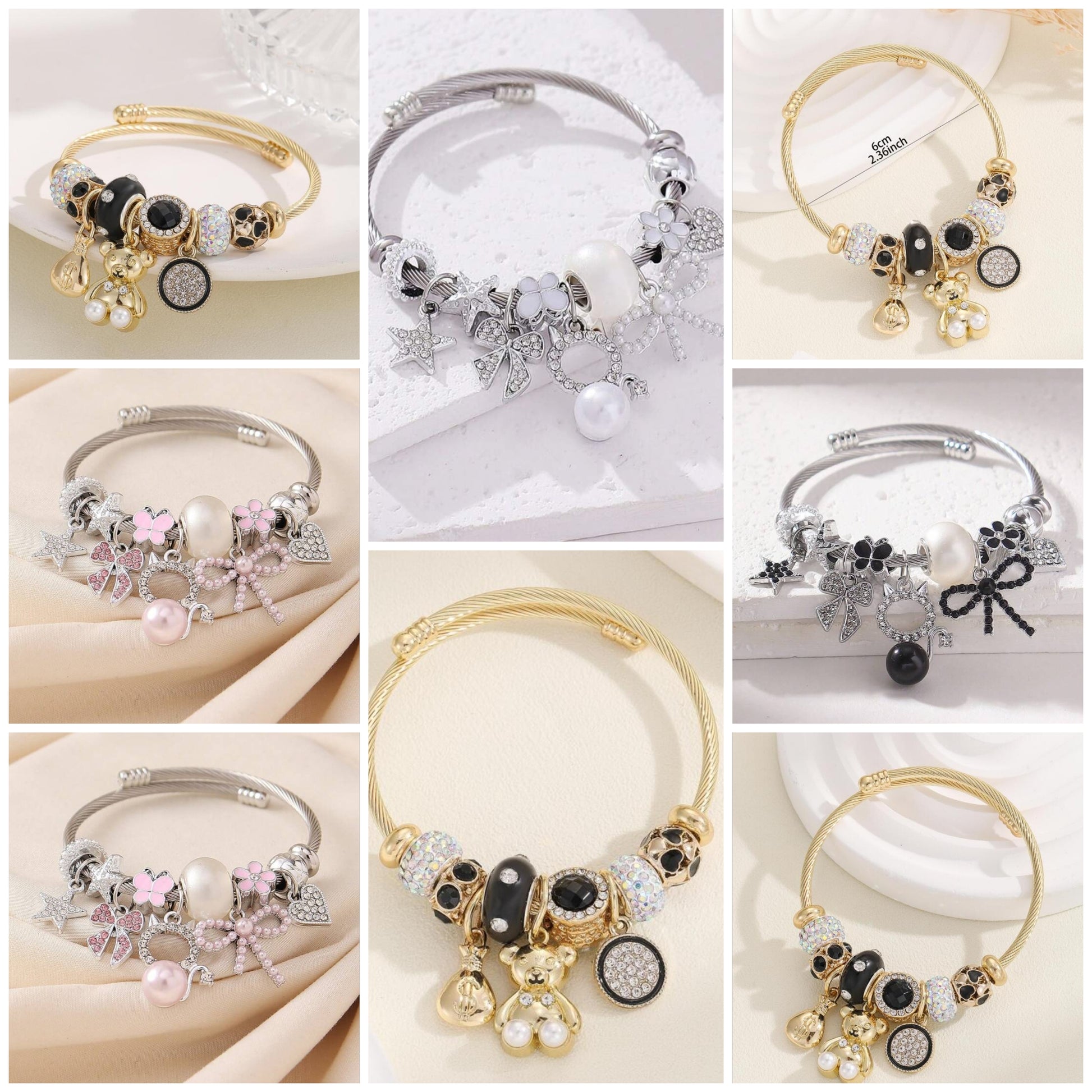 Rhinestone Decor Bear Charm Bangle cocomoney