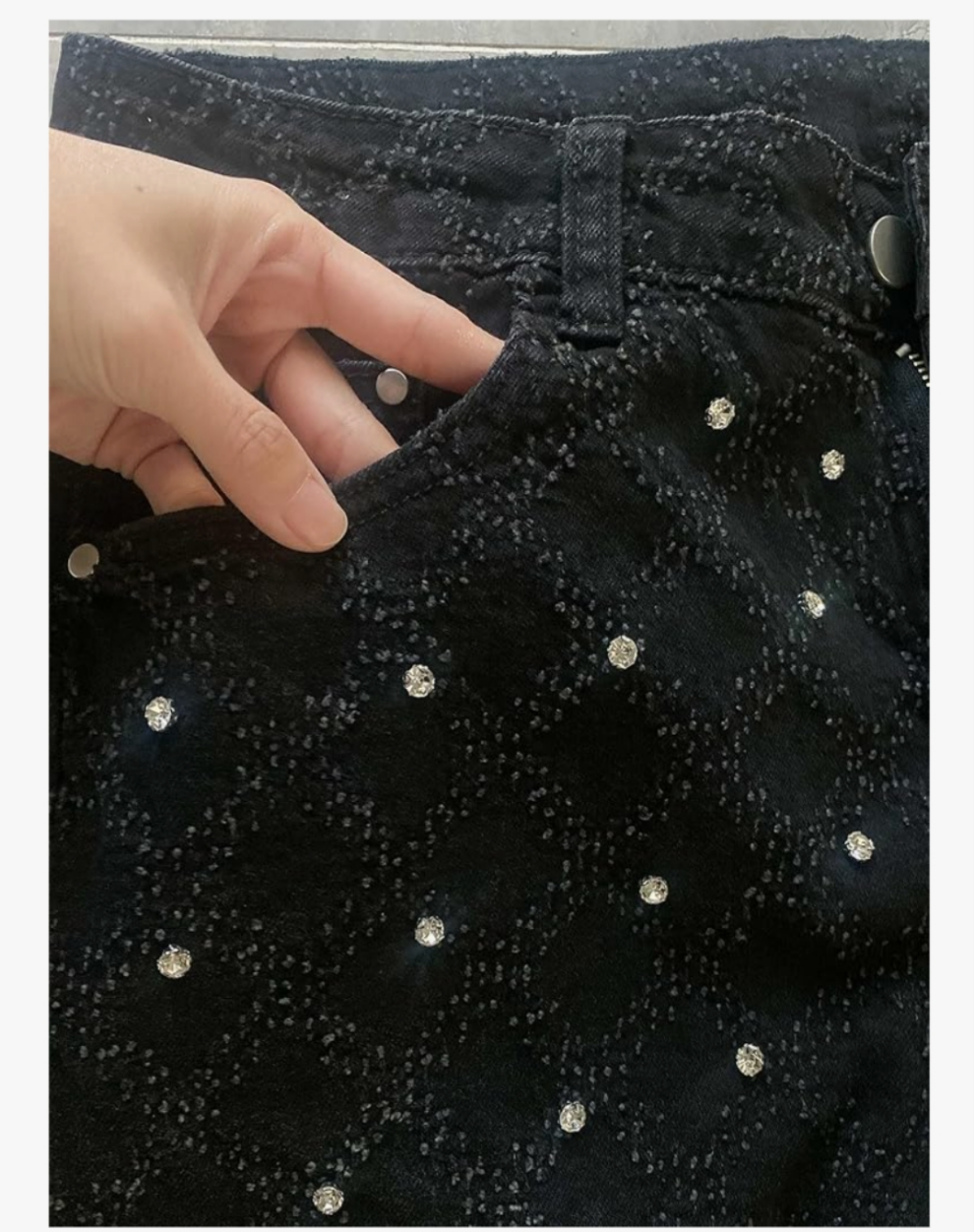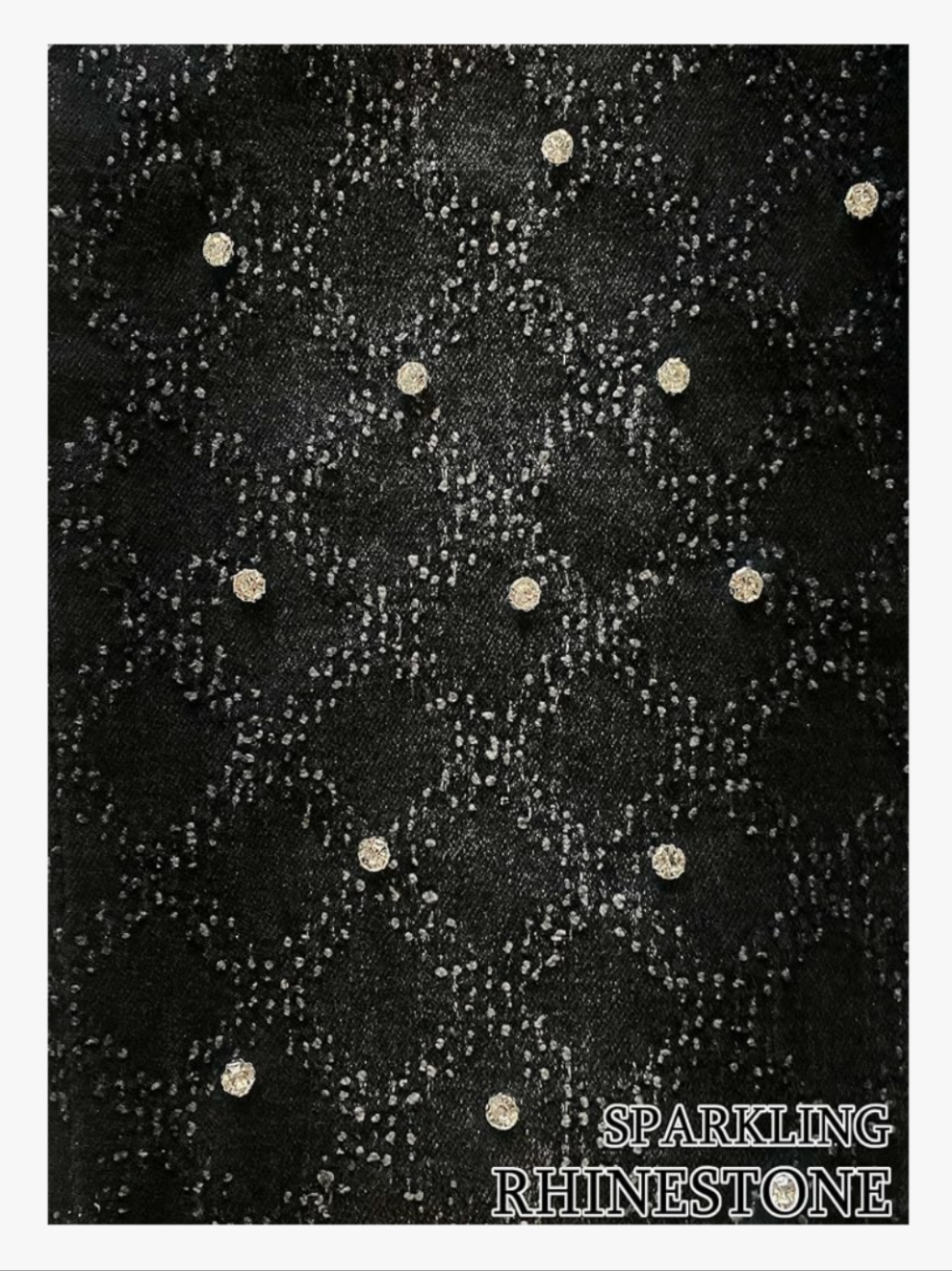 COCOMONEY.STORE. 90%COTTON Materials: jeans with rhinestones, skinny jeans are made of high-quality cotton. Comfortable to wear and has fashion looks.