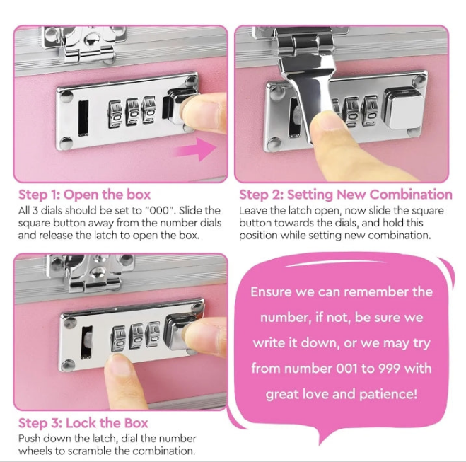 Safe Locking Box With 6 Accessories, Aluminum Medicine Case for Home and Travel,Childproof Pill Box Organizer, Lock box for Valuables, 7.66''x 5.12''x 4.13'' (Pink Set)ColorPink