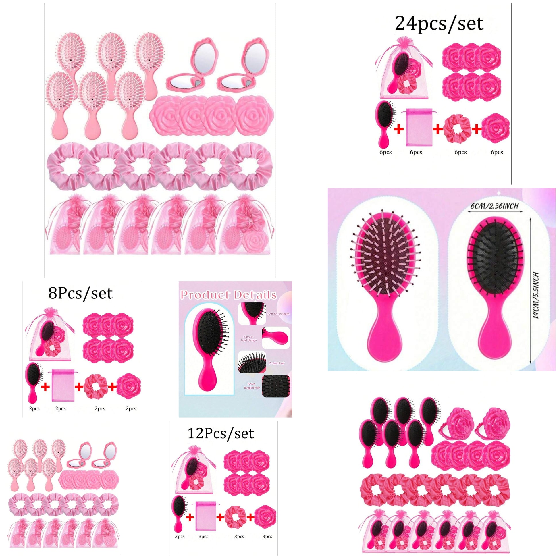 Set Bridal Shower Favors,Hair Brush+Scrunchies+Cosmetic Mirror+Organza Bags, Hair Accessories For Wedding, Bridesmaid, Proposal, Birthday, Gender Reveal Parties - Pink Party Favors, pp polyester