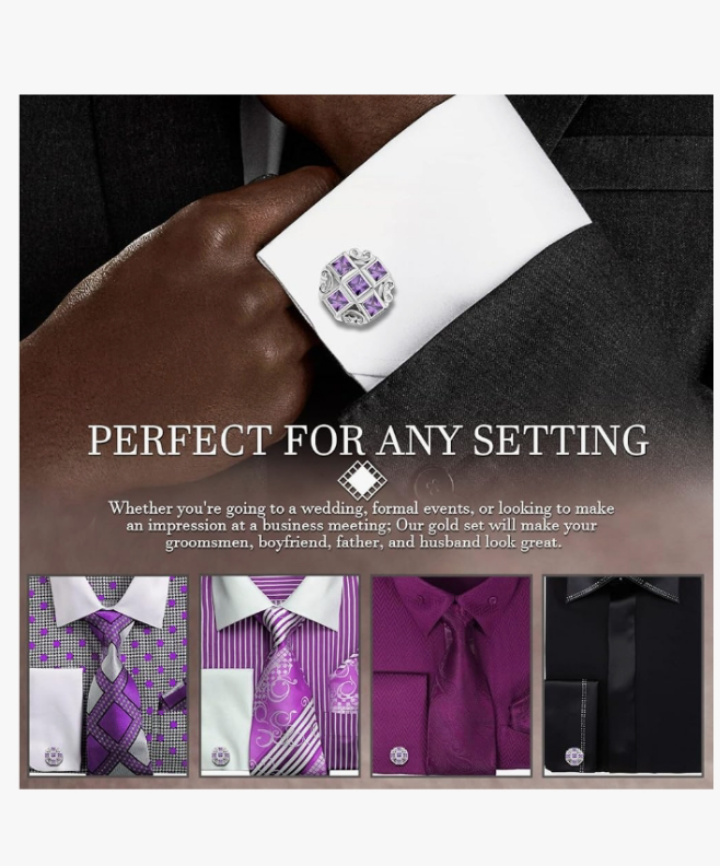 【Match with Men’s Wear and Accessories easily】Cocomoney cufflinks set with AAA gemstone in purple color complement any suit and Shirt, not only with classic white, black, blue and red clothes, but also with brown, pink and green accessories (neckties, necklaces, brooches, etc.) necessary for weddings.