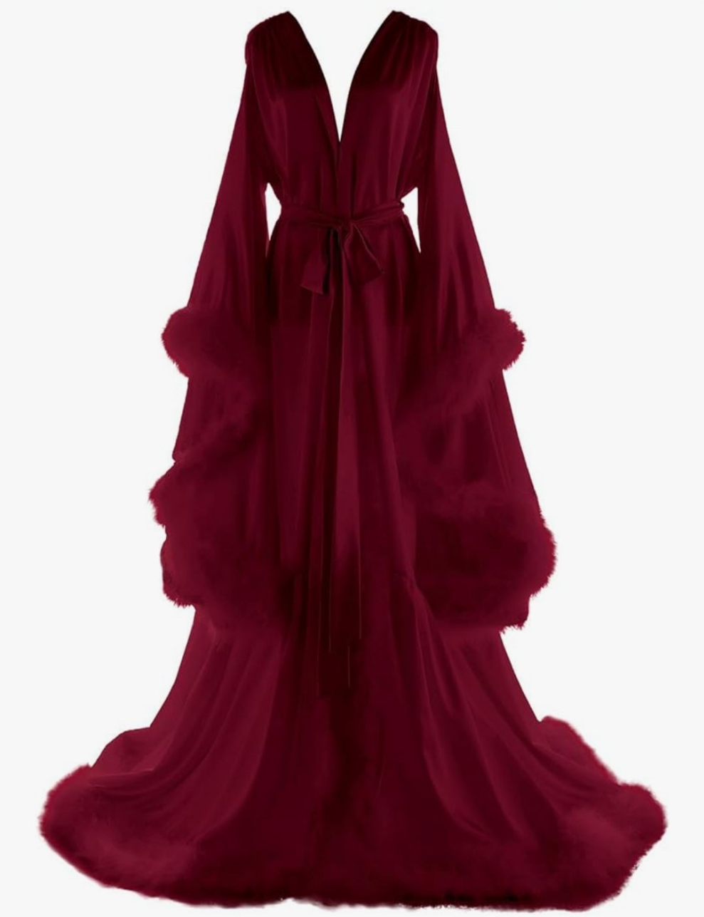 More Puffy! More Thick! Material: Robe is Silk Satin and Feather. Please allow some feather fall off, because it is natural feather. Sheer Long Robe with Fur, Long Sleeve Bridal Robe Kimono Nightgown, Feather Bridal Robe Wedding Scarf Maternity Robe for Photoshoot Lingerie for Women. For the reasons for the screen display, please allow a slight difference.