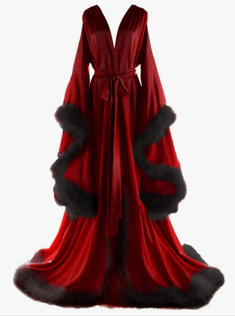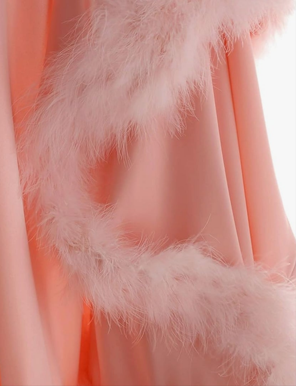 More Puffy! More Thick! Material: Robe is Silk Satin and Feather. Please allow some feather fall off, because it is natural feather. Sheer Long Robe with Fur, Long Sleeve Bridal Robe Kimono Nightgown, Feather Bridal Robe Wedding Scarf Maternity Robe for Photoshoot Lingerie for Women. For the reasons for the screen display, please allow a slight difference.