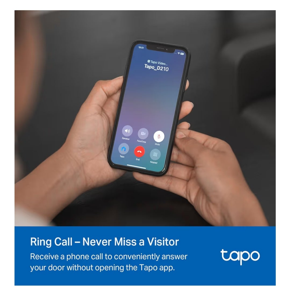 【Ring Call – Never Miss a Visitor】Receive a phone call to answer your door without opening up the Tapo app. Quickly answer visitors with once-click convenience. Stay connected, stay informed, and never miss a visitor again. (Calls are generated via app and will not use cellular minutes)